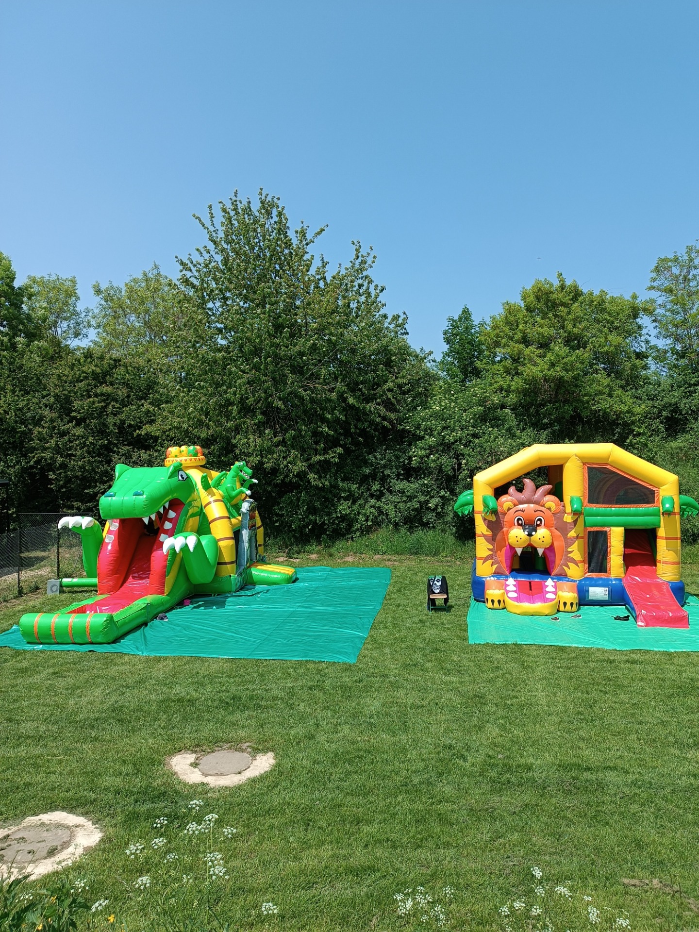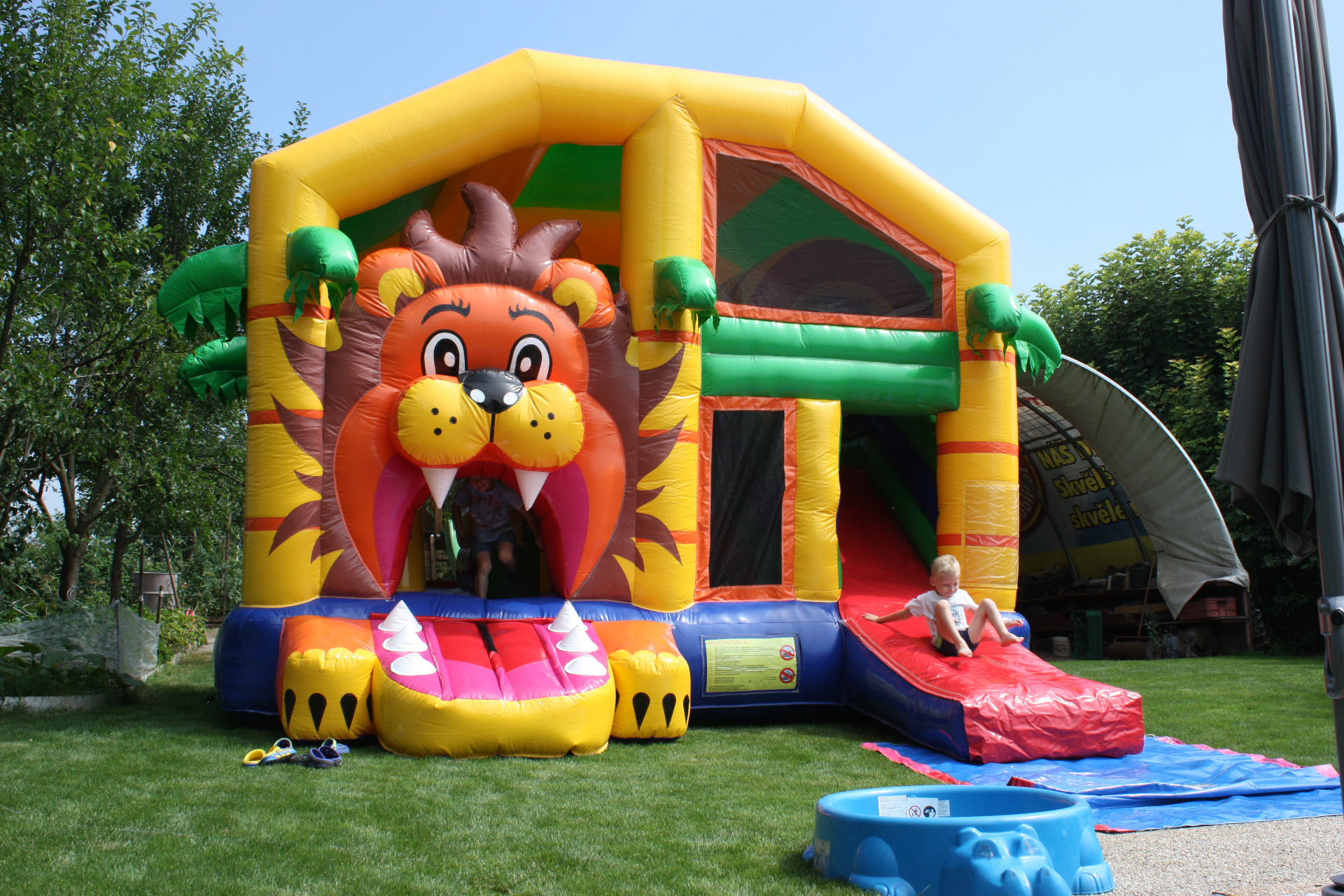 Skákací hrad, skluzavka a herní plocha v jednom.